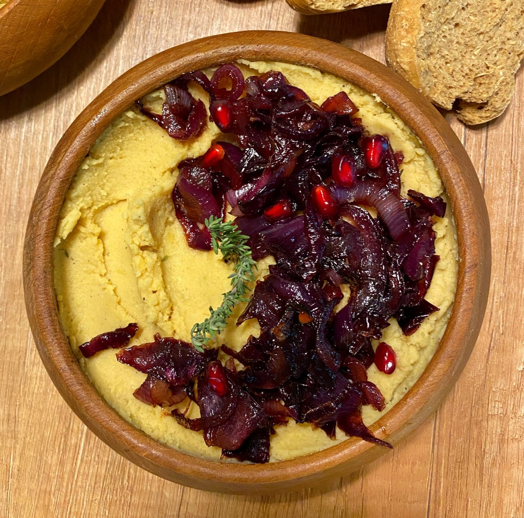 Soft and creamy, the Greek fava dish is essentially a yellow split beans purée, seasoned with onion, thyme, olive oil and all kinds of goodness. Mine here gets a bit of a zhoosh up with tahini and caramelised onions and I assure you, the result is divine!